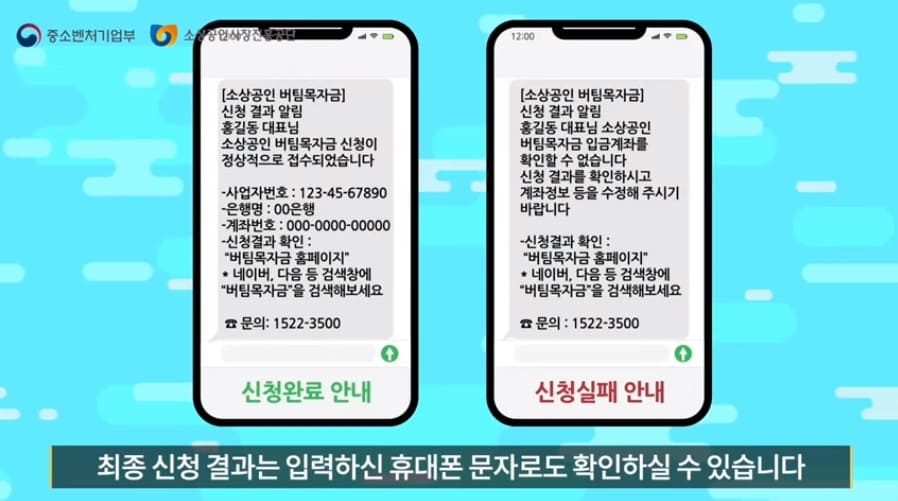 이번 소상공인 버팀목자금 신청 대상이신 분들의 경우 신청 안내 문자를 수신하셨을 것으로 예상됩니다만 혹시 문자 발송이 누락됐을 수도 있으니 소상공인 버팀목자금 신청 홈페이지에서 직접 확인해보시길 바랍니다.