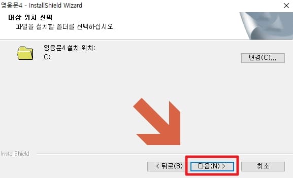 6. 키움증권 영웅문 4 파일을 설치할 위치를 지정한 뒤에 '다음' 버튼을 클릭해줍니다.