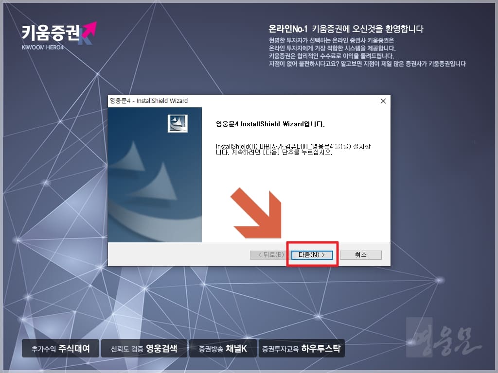 5. 기다리다 보면 키움증권 설치 화면이 뜨게 됩니다. '다음' 버튼을 클릭해주세요.