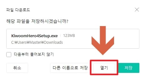 3. 해당 파일을 저장하시겠습니까? 창이 뜨게 되면 저장할 필요 없이 '열기' 버튼을 클릭해주시면 됩니다.