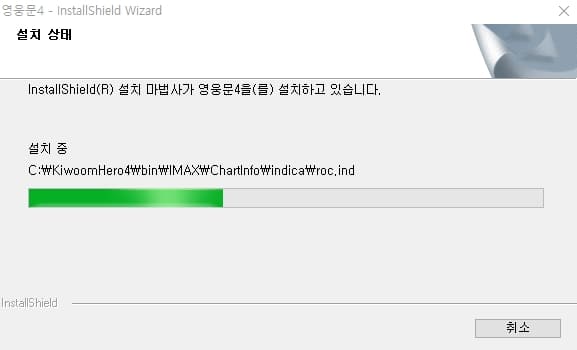 7. '설치' 버튼을 클릭하고 기다려주면 설치가 완료됩니다. 키움증권 영웅문 다운로드하는 방법 정말 간단하죠?