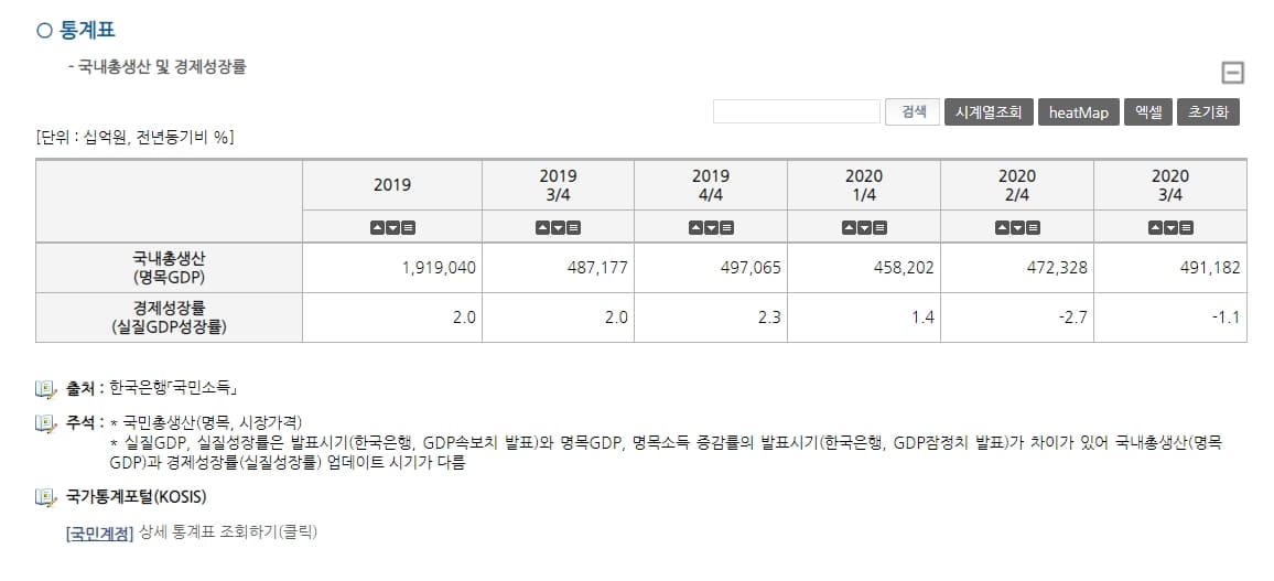 만약 좀 더 상세한 GDP 관련 정보를 확인하고 싶으시다면 'e 나라지표' 사이트에 방문하셔도 확인하실 수 있습니다.