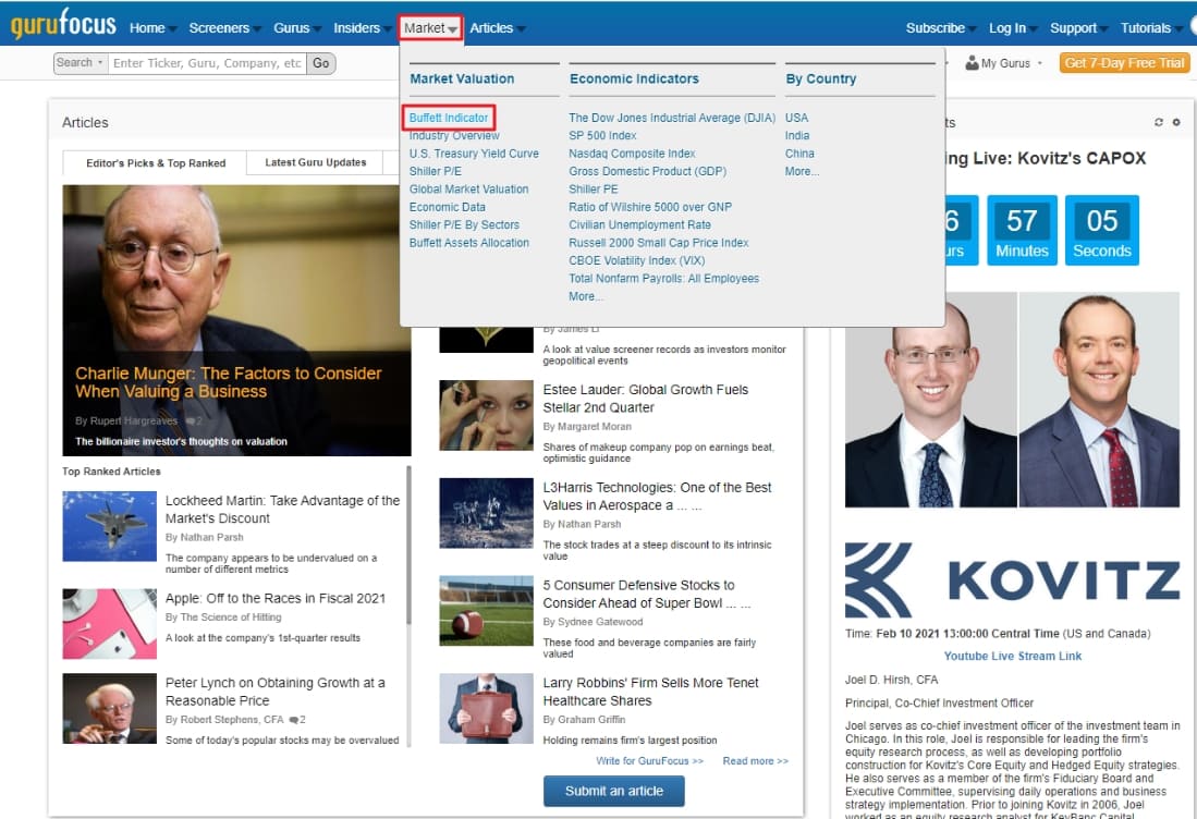 지금까지 알려드린 사이트에서 시가총액과 GDP를 확인 후 버핏지수를 구할 수도 있지만, 이렇게 일일이 구하지 않고도 버핏지수를 알아서 구해 정리해둔 유용한 사이트가 있어서 소개해드립니다.