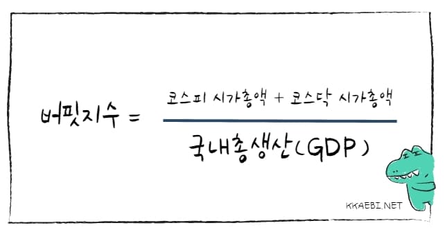 버핏지수 = (코스피 시가총액 + 코스닥 시가총액) / 대한민국 국내총생산(GDP)