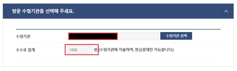 수수료의 경우는 수령기관에 직접 지불하시면 되고, 현금결제만 가능하다는 점 참고해주세요.