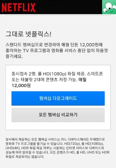 넷플릭스 멤버십 해지를 막기 위해 멤버십 다운그레이드를 유도하는 란도 보이고 있긴 하지만, 필자의 생각으로는 넷플릭스는 프리미엄 요금제를 사용하는 것이 가성비도 가장 좋고, 저렴하게 이용하는 방법이라고 생각합니다.