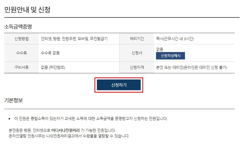 소득금액 증명서는 오프라인으로 직접 방문 후 발급 및 수령하셔도 되겠지만 요즘엔 집에서도 간편하게 인터넷으로 발급 신청을 하셔도 됩니다. 발급 신청 후에는 해당 기관으로 방문하여 빠르게 수령만 하면 되니 참 좋지요.