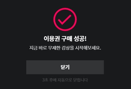 이용권 구매 완료 후에는 바로 왓챠에서 영상을 무료로 감상하실 수 있습니다.