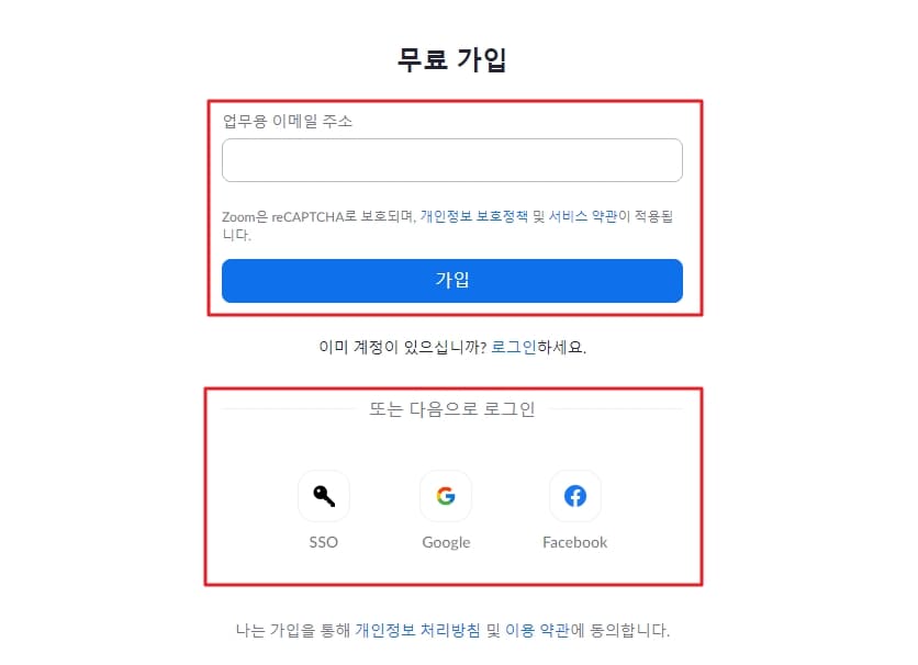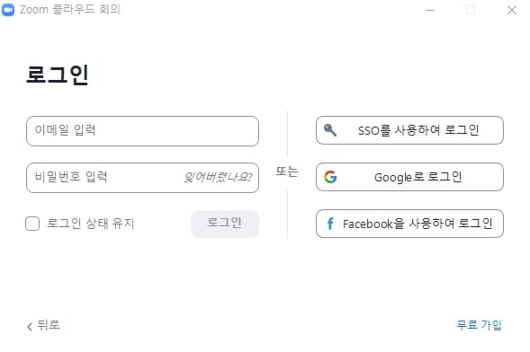 줌 설치가 완료되면 로그인 창이 뜹니다.