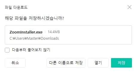 줌 설치가 시작되는데 파란색 상태바가 꽉 찰 때까지 조금만 기다려주세요.