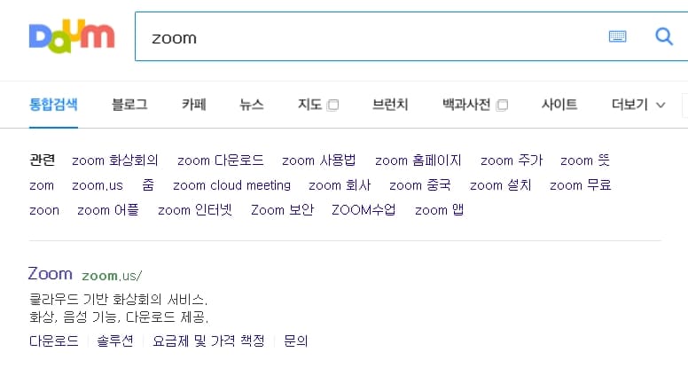 다음에서는 줌 화상회의 다운로드를 하기 위해서 zoom이라고 입력해주셔야 한다는 점 잊지 마세요.
