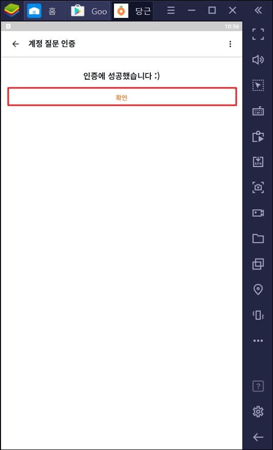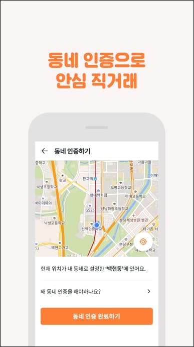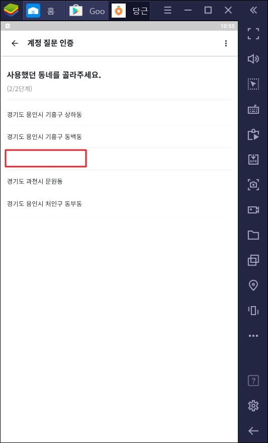 두 번째 계정 질문 인증으로 사용했던 동네를 선택해주신 뒤 확인 버튼을 클릭해주시면 됩니다. 정말 간편한 인증 절차죠?