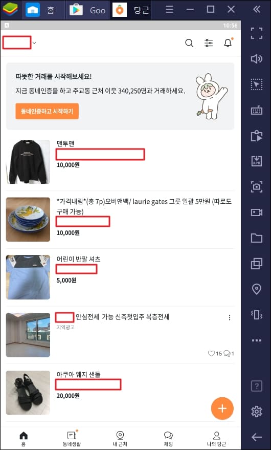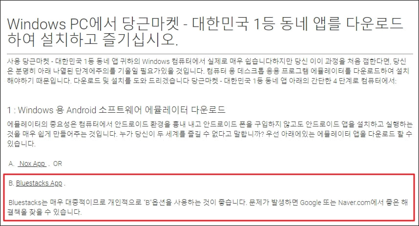 당근마켓 공식 계정에서도 블루스택 설치를 통해 앱을 설치하는 것이 좋다고 권장하고 있는 것으로 보아서는 블루스택을 설치하시는 편이 좋겠죠?