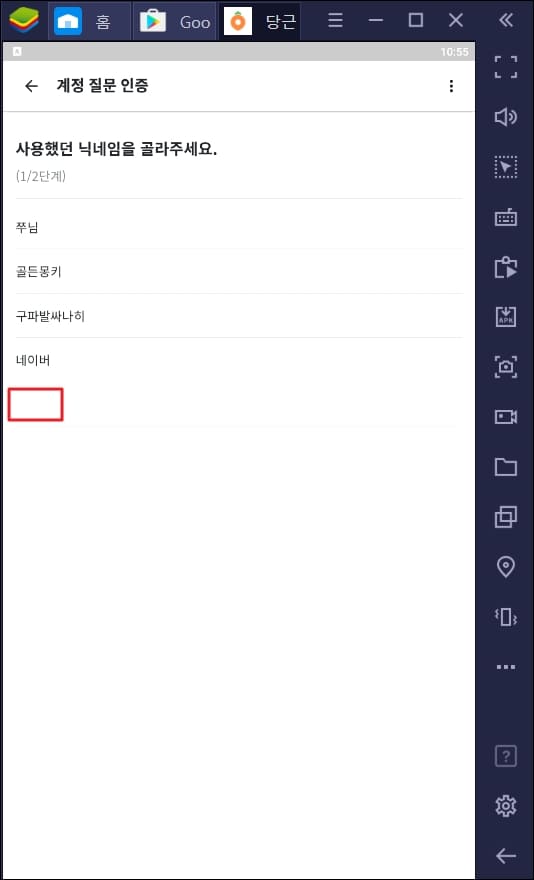 휴대폰 기기로만 이용했던 계정을 PC버전으로 사용하기 때문에 계정 질문 인증 절차도 진행해주셔야하는데요. 2단계에 걸쳐서 질문을 받게 되실 겁니다.