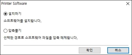 다음 단계로 프린터 소프트웨어 설치 창이 뜨게 됩니다. 설치하기에 체크를 한 뒤 하단의 확인 버튼을 클릭해주세요.