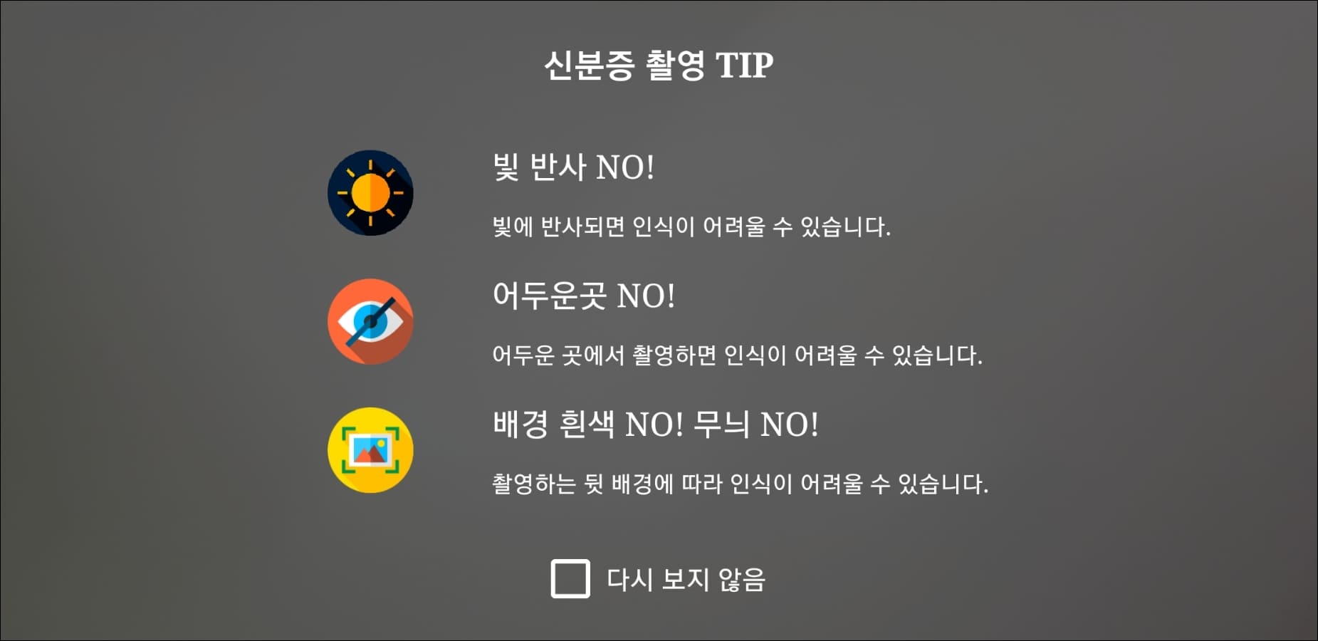 신분증 촬영 팁은 상단 이미지를 확인하셔도 주의사항을 참고하실 수 있습니다.