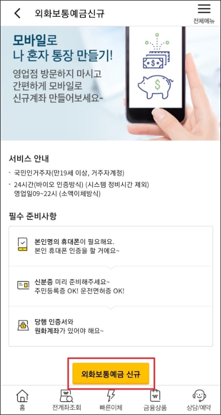 국민은행 외화통장 비대면 계좌개설 방법