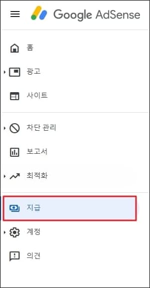 구글 애드센스(Google Adsense)에 로그인 하신 뒤 지급 메뉴로 들어가줍니다.