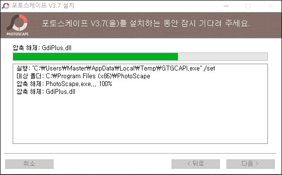 다음 버튼을 클릭하자마자 빠르게 포토스케이프가 설치됩니다. 순식간에 다운로드될 테니 조금만 기다려주세요.