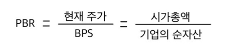 즉 PBR 계산식에서 기업의 순자산이란 기업의 총자산에서 부채를 뺀 것을 의미합니다.